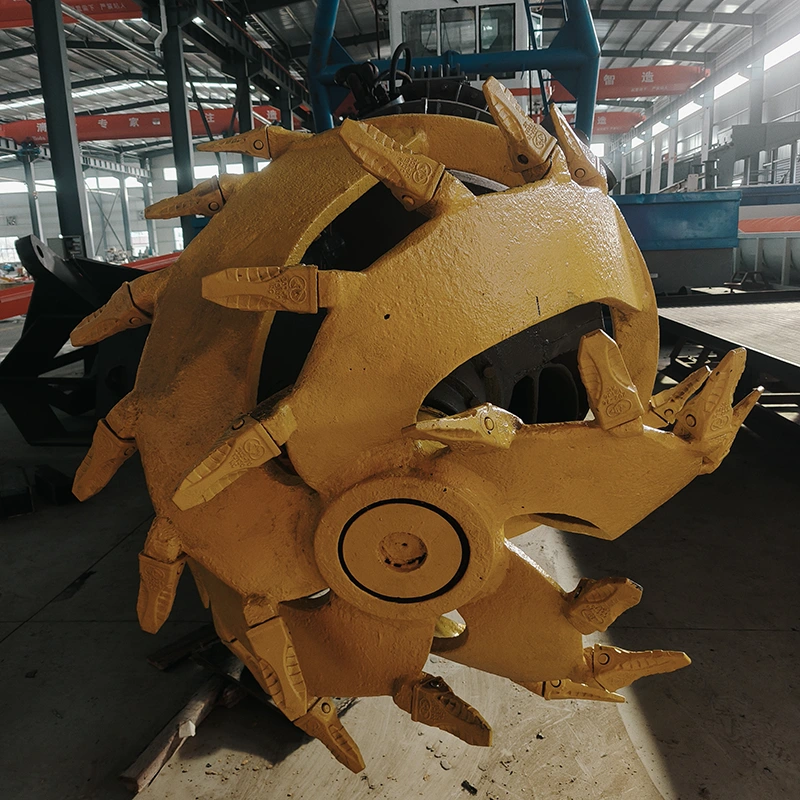 အရှေ့ဘက်တွင် ဟိုက်ဒရောလစ်စနစ်ဖြင့် မောင်းနှင်ထားသော ခုတ်ထစ်ခေါင်းကို တပ်ဆင်ထားပြီး၊ ၎င်းသည် မြစ်ကြမ်းပြင်အခြေအနေများတွင် ရိုးရာရွှေတူးစက်များ၏ စွမ်းဆောင်ရည်နိမ့်ကျမှုကို ဖြေရှင်းပေးကာ သေးငယ်သောရွှေထမ်းသဲအလွှာများကို ဖြတ်ကာ ဖြိုခွဲရန် လှည့်ပတ်သည်။ ဥပမာအားဖြင့်၊ မာကျောသောသဲအလွှာရှိသော မြစ်များတွင် ခုတ်ထစ်ခေါင်းသည် သတ္တုရိုင်းပစ္စည်းများကို စုပ်ယူနိုင်သောအခြေအနေသို့ ချေမှုန်းနိုင်သည်။